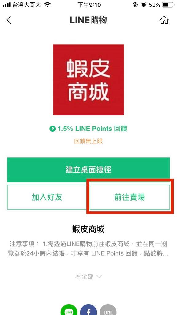 ※享有LINE Points回饋的只限蝦皮商城喔!