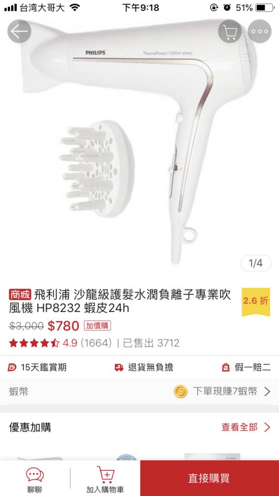 而且現在在做折扣超級划算的,原本大概要兩千多,現在買才$780