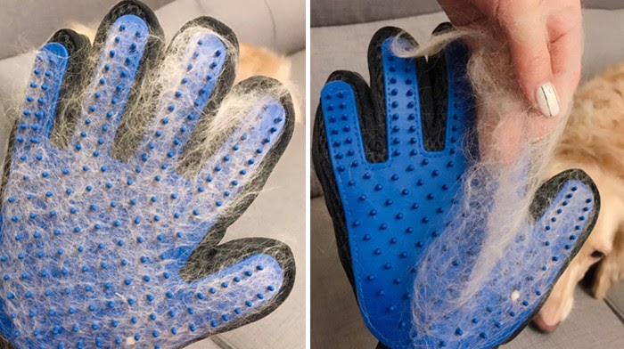 除過毛的手套,輕輕一拉就能拉出一整片的毛髮,真的蠻方便的!