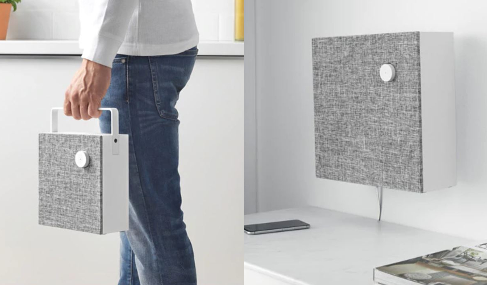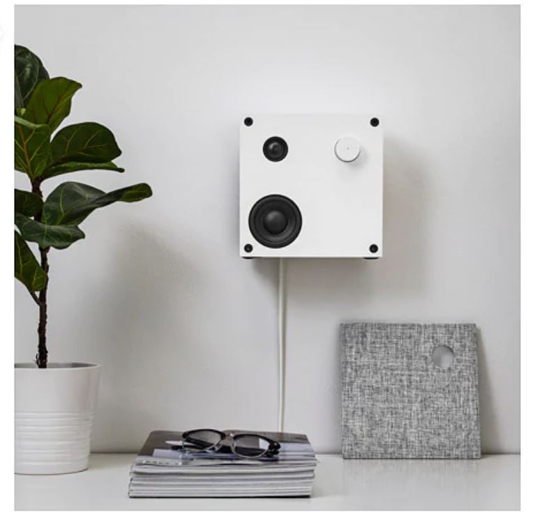 這款ENEBY藍牙喇叭,採立方體的外型,推出「黑/灰」和「灰/白」兩種配色。喇叭面板的布料是可拆式設計的,所以如果髒了還方便清洗!目前喇叭提供8吋(8x8)以及12吋(12x12)兩種選擇,8吋版本有提把設計,讓大家可以方便攜帶使用~ IKEA也提供選配的壁掛器或是立架可搭配使用。還有哪些極具特色的行動藍芽喇叭,現在一起來看看!