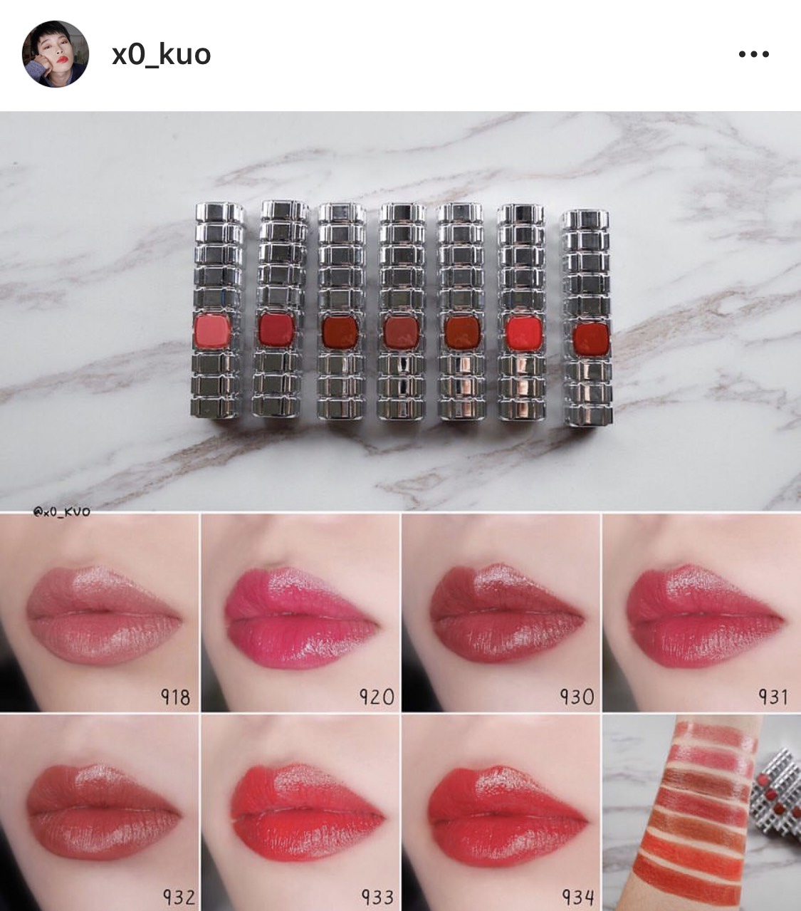 首先第一支#918在x0唇上就美得逆天,輕盈的嫩粉色配上這款亮澤水潤的質地顯得更溫柔迷人,漂亮的鏡面光讓唇部看起來宛如天生豐潤。很適合搭配日系妝容或是透明感淡妝,仙氣十足的選擇。