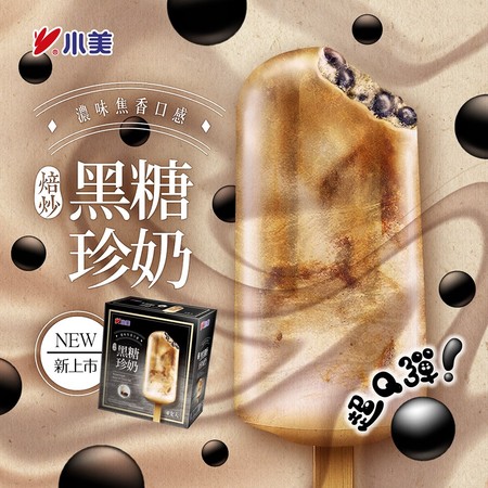 珍珠奶茶一直貴為「台灣行銷大使」之一,焦香黑糖混合濃郁奶香,再搭配Q彈珍珠,風味及口感更加升級,成就濃厚系極品雪糕,為手搖飲品跨界的最佳代表。小美冰淇淋這一波新品,成功抓緊大家的目光,濃郁的口感讓厭世的日常都療癒了起來!