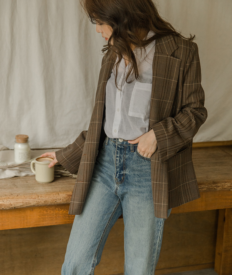 經典的格紋出現在西裝外套上呈現復古懷舊感,很推薦給平常穿衣風格是古著風或是港式復古時髦路線的人。