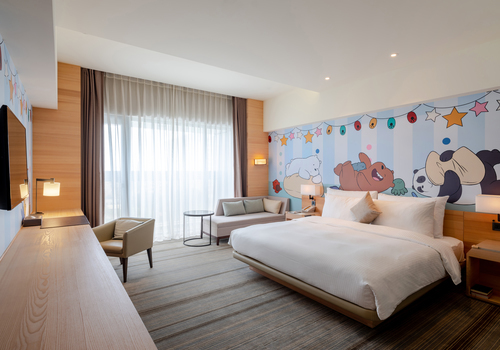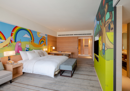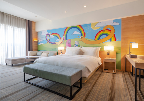 《COZZI和逸飯店》-台南西門館從2019年4月起與《Cartoon Network卡通頻道》聯名合作,推出三部超強人氣卡通的主題客房:包含「探險活寶」、「飛天小女警」與「熊熊遇見你」!依照三部卡通的情境、18款可愛豐富的壁貼,精心打造共54間卡通頻道主題客房及1間主題餐廳。快來看看要選哪間卡通房,跟卡通明星們一起暢遊台南啦~