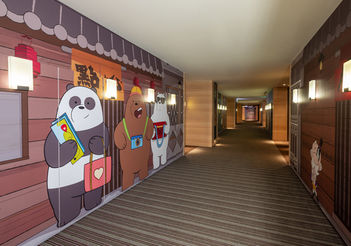 除了主題房間以外,經過飯店的廊道時也不要忘記留意這些精心佈置的可愛卡通壁圖!光是看著心情就雀躍了起來啊~