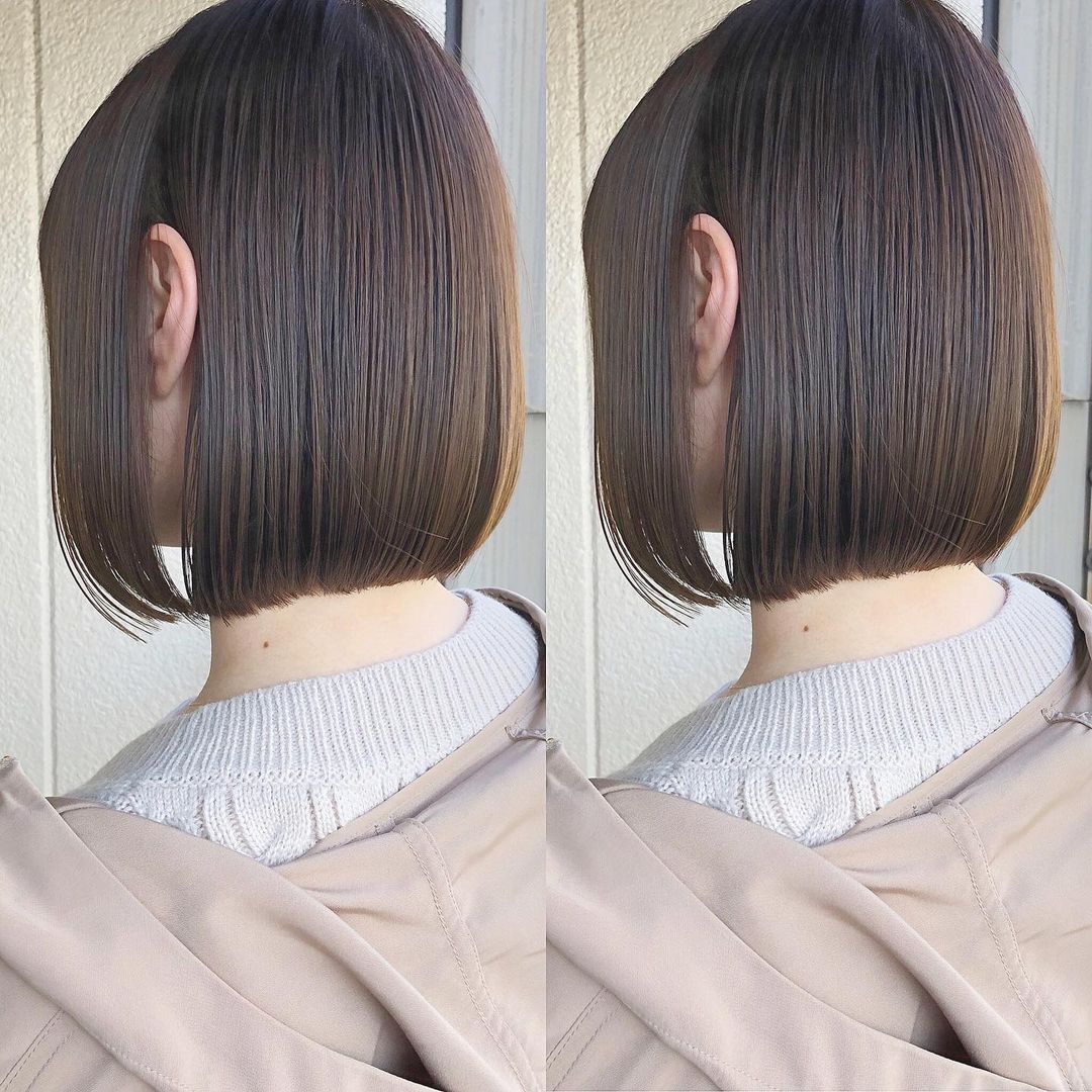 「切齊鮑伯頭」正如其名,就是將髮尾切齊的短鮑伯頭。髮尾呈圓弧狀,讓髮型多了一股成熟洗鍊的感覺,適合搭配復古甜美風的打扮。在頭上多加一頂髮箍,就能讓整個人充滿時尚感!