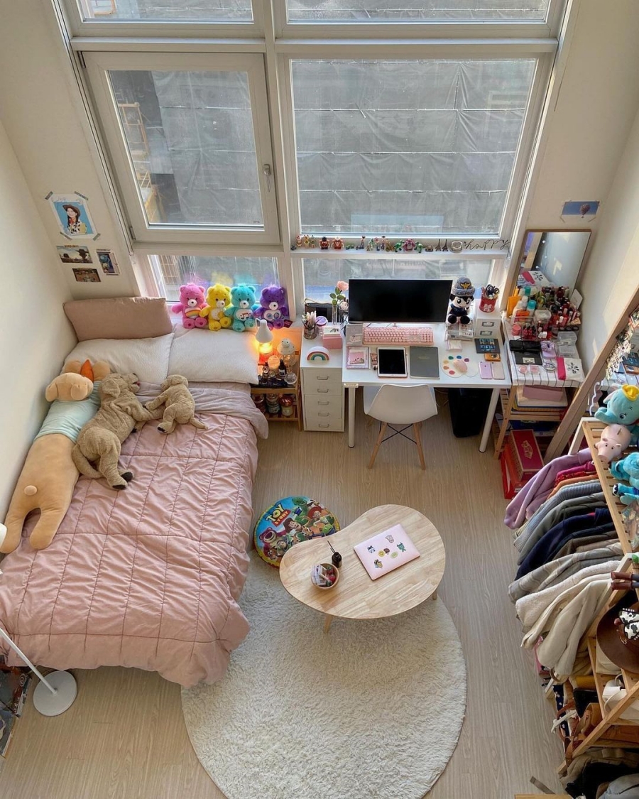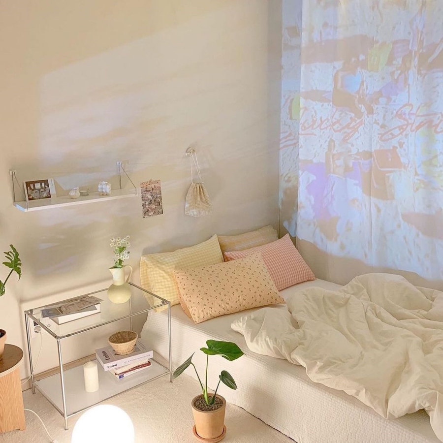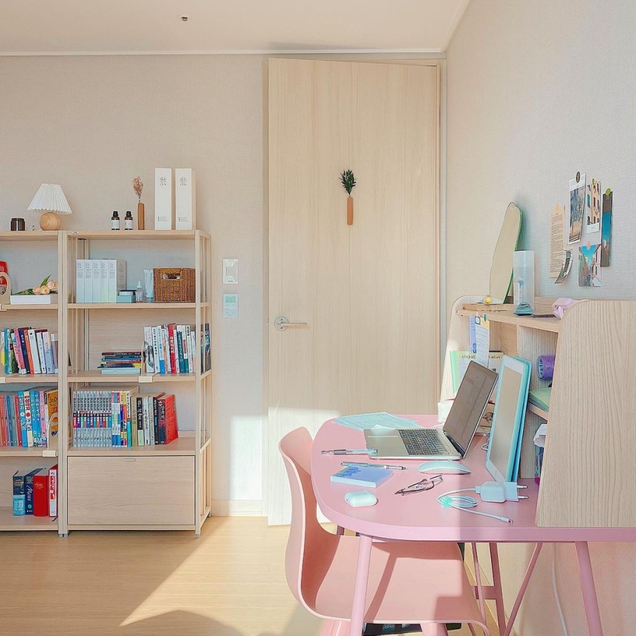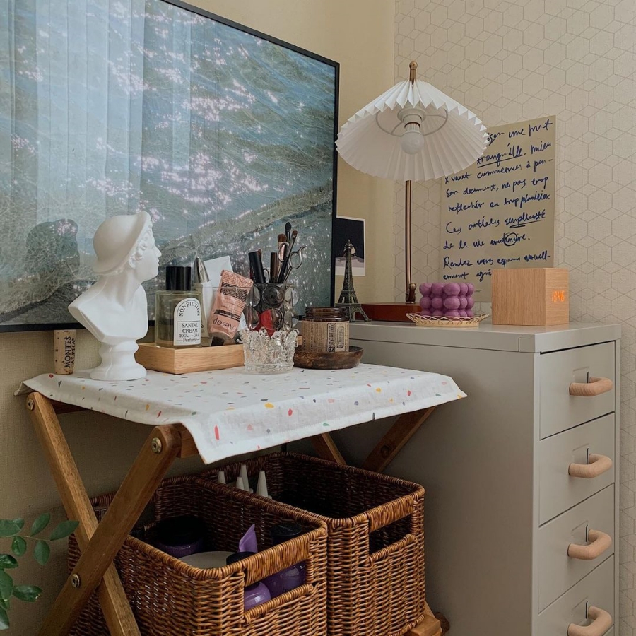 韓系的房間很注重裝飾和儀式感,比如說規劃一個角落特別擺放畫具和作品、將喜愛的明信片和收藏品布置成一個展示區等等。這樣的區域能凸顯個人喜好與特色,待在房間也不無聊!