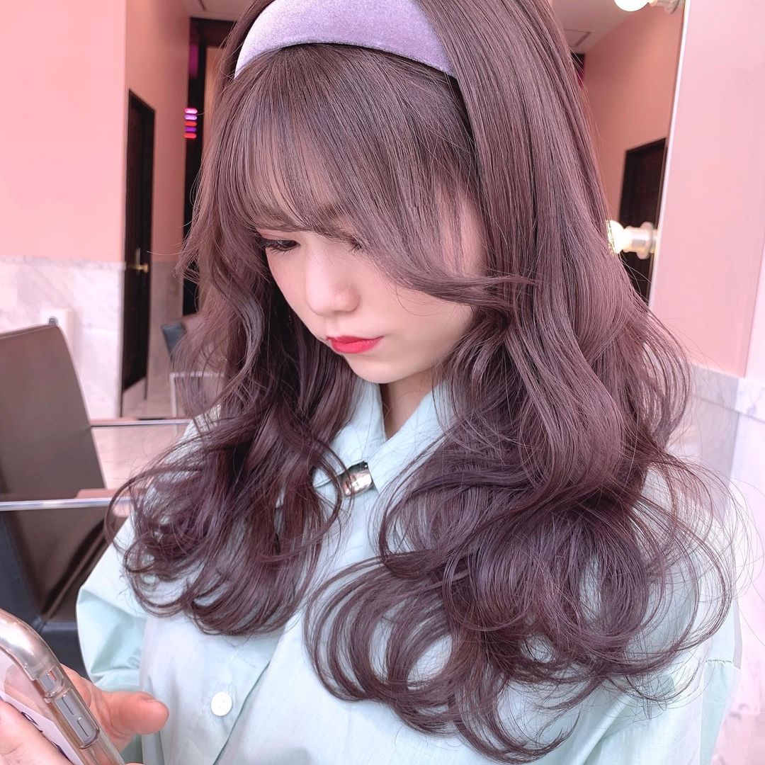 長髮女孩很適合挑戰韓系髮型!韓國常見的「撒嬌瀏海」,就是讓瀏海隨著兩側髮絲向後燙捲的造型。「撒嬌瀏海」如果搭配紫色系或粉色系的髮色,就能營造出甜美的少女風格。過渡期的頭髮,只要加入一點流行元素,就能輕鬆維持時尚感!