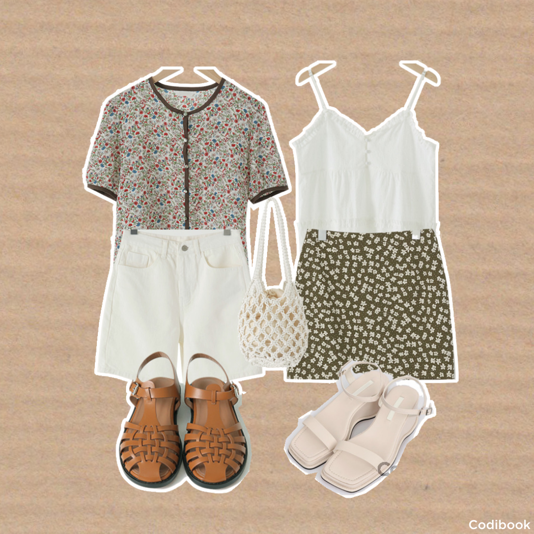 一起去海邊散步看夕陽如何?輕薄的針織跟藤編包充滿夏日氣息,