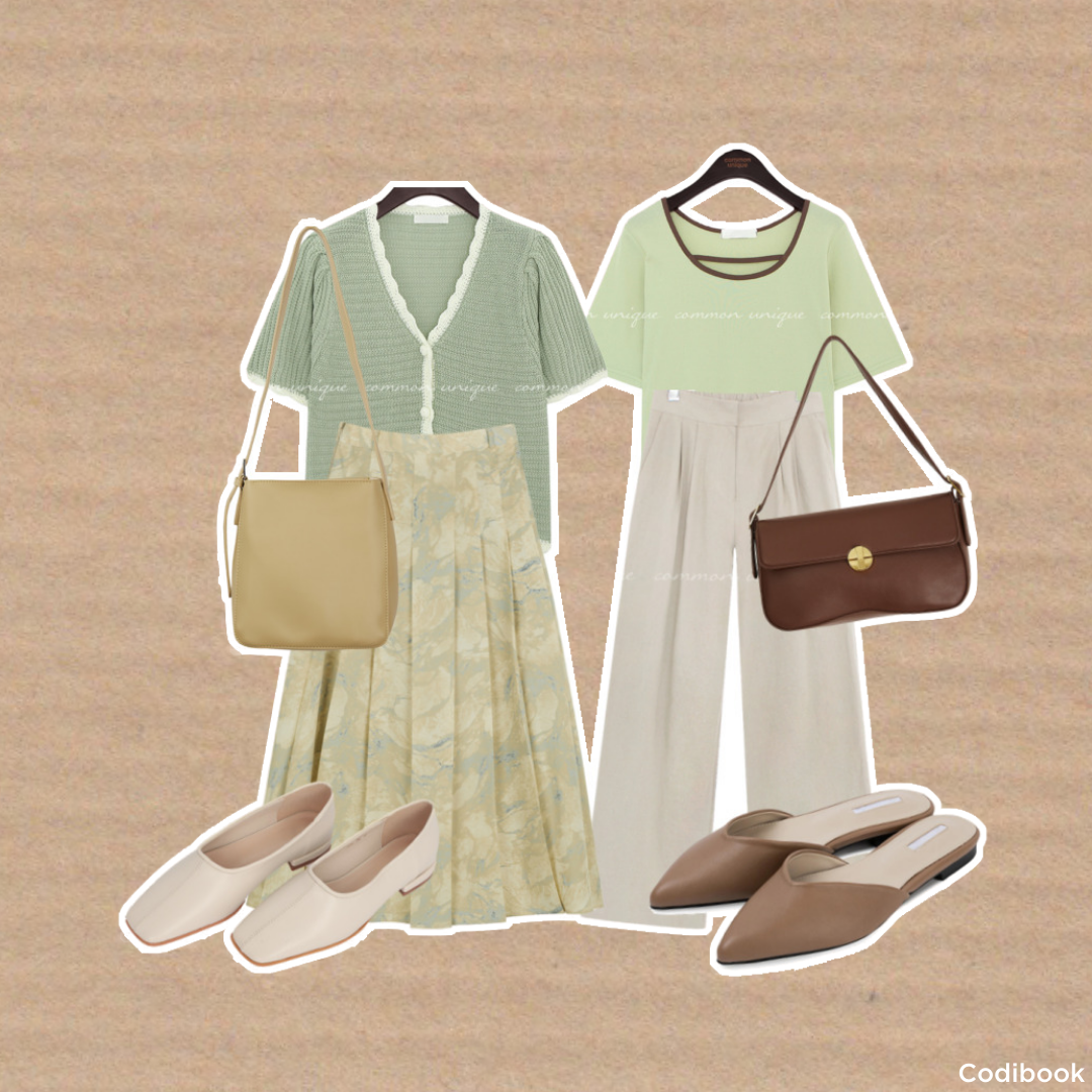 沈靜的綠色是今夏的大勢色!媽媽穿沈穩的薄荷綠上衣,V領滾跳色邊,增添了活潑的感覺又有臉部跟頸部顯瘦的效果。