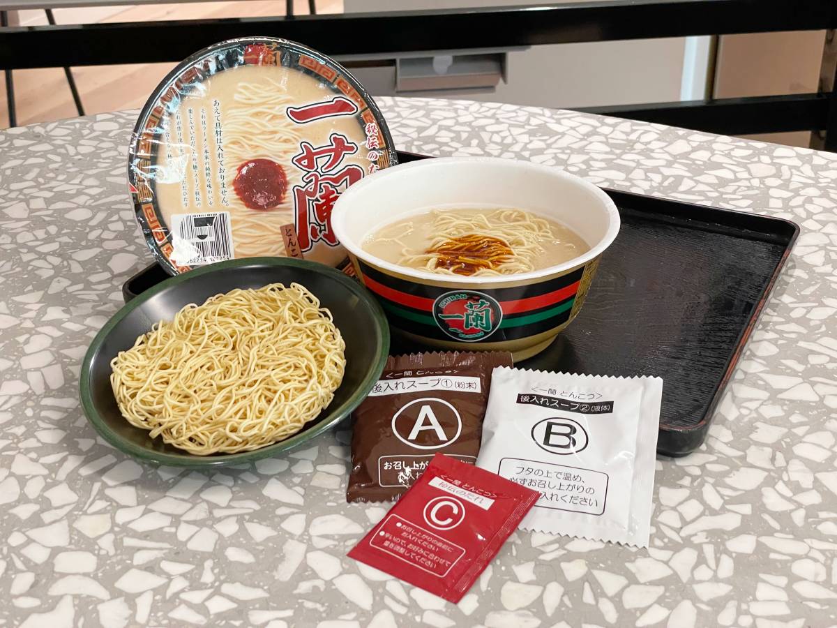 一蘭杯麵是目前重量最重的日本泡麵,麵條口感Q彈,豚骨湯頭內含特製香油,味道滑順濃郁,再搭上隨附的「赤紅秘製辣醬」,滋味回甘帶著不刺舌的香辣感,味道神似實體店鋪提供的現煮拉麵。