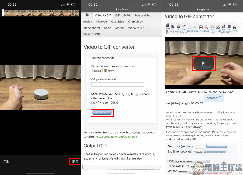 當影片錄製完成後,接著就進入編輯的步驟啦!開啟網頁瀏覽器前往 ezgif.com 這個我們之前曾介紹過相當好用的線上免費影片轉 GIF 網站,關於這網站的使用方法可參考我們之前的介紹(點我前往複習)。
