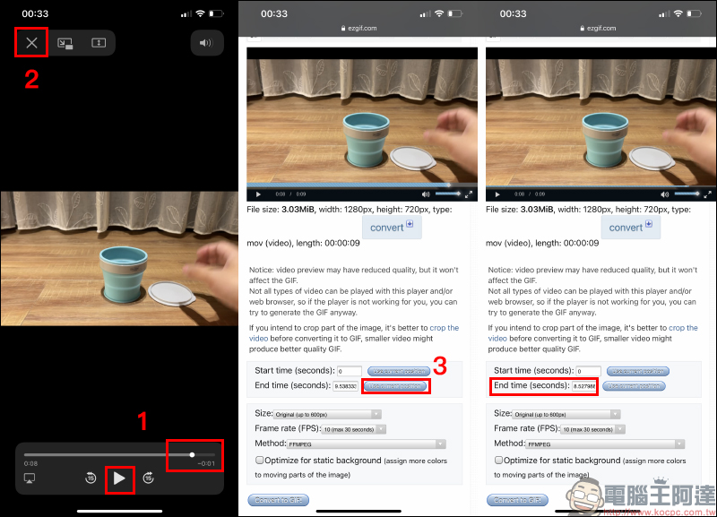 最終完成的效果如下,相比使用原始的影片檔案直接轉換為 GIF ,透過 ezgif.com 網站能在轉換時將影片幀數降低,便能產生更相似停格動畫用多張照片拍攝而成的效果。而且,這招其實不僅限於 iPhone ,其實各款智慧型手機都適用哦!