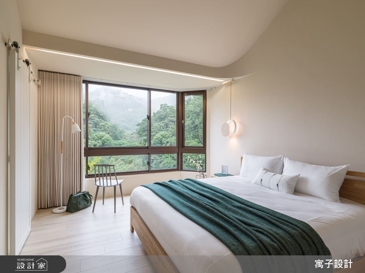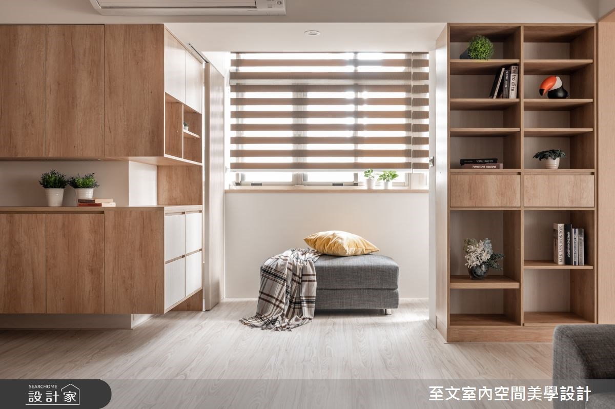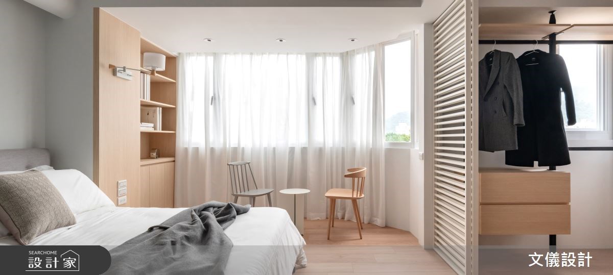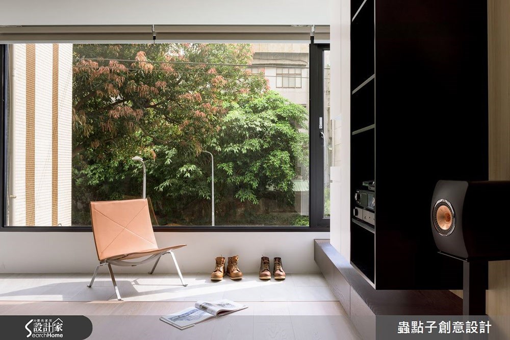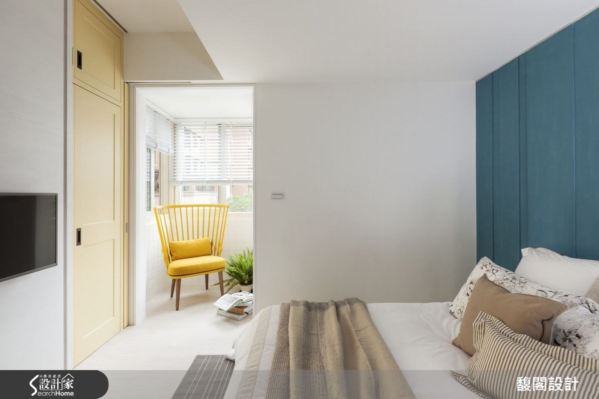 室內陽台不只是限定於客廳區域,臥室也可以規劃出舒適的室內陽台休憩區。像是許多老屋都有L型長型陽台、可以將傳統的牆面與鐵欄杆改造成玻璃拉門,讓陽台成為主臥的一部分,也能自然地帶入綠意、空氣也相對流通。另外,老屋因為結構樑柱產生的畸零空間除了用收納櫃填滿外,不如佈置一張單椅搭配小茶几,創造睡眠區之外的休憩空間。
