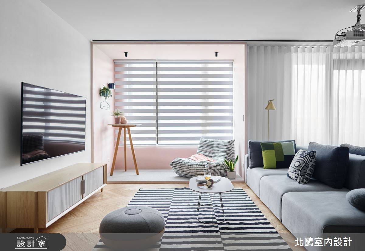 室內陽台雖然與戶外連接性沒有開放式陽台高,但室內陽台設計能降低因為潮濕多雨氣候造成陽台發霉受損的問題。將室內陽台做為客廳的延伸,可以選擇同樣材質的地板延伸,或在陽台處拼接花磚、木紋磚或塗料等等,創造場域的區隔但同時保持空間的整體感。全開放式陽台沒有落地玻璃或屏風阻礙,可以挑選幾盆大型落地植物搭配藤編或陶瓷花盆;放上一張椅凳或懶骨頭,能不用受天氣干擾地沐浴陽光,讓室內陽台成為第二個休憩客廳。