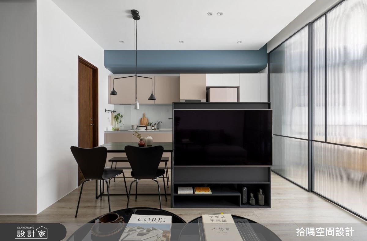 若是家裡坪數不大,可以規劃半高電視牆,上方留空的牆面讓光線、視線都能夠穿透,保持空間的開闊感,而且除了正面是電視牆以外,牆的側面或背面都可以結合收納機能,還能成為客廳與餐廚空間的格局界線,是小坪數電視牆的最佳選擇之一。
