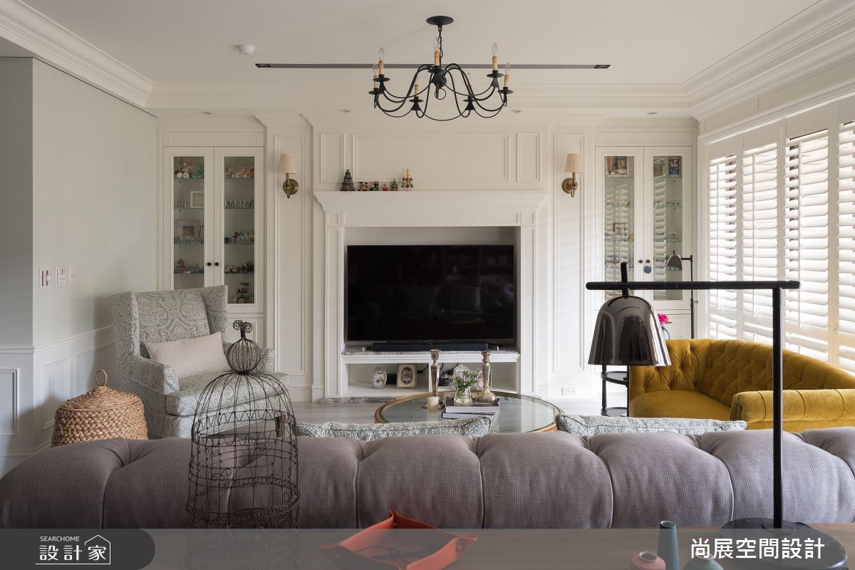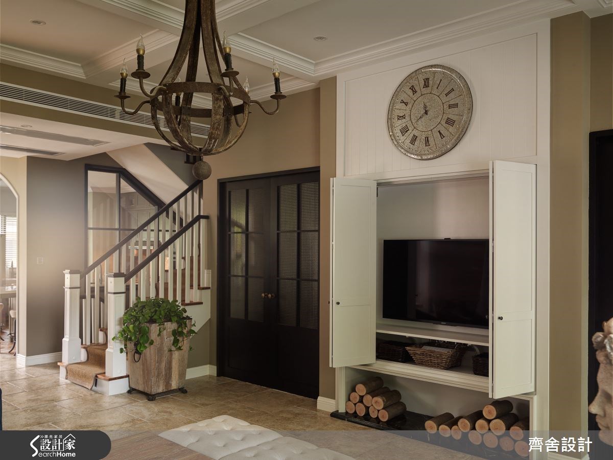 國外很常在客廳電視牆結合壁爐設計,但台灣氣候基本上用不到壁爐取暖,所以若是渴望擁有經典的壁爐元素,可以在電視牆仿造壁爐樣式,並且壁爐上方能擺放相框、藝術品等生活小物,為新古典、美式風、鄉村風的居家增添溫馨氛圍。