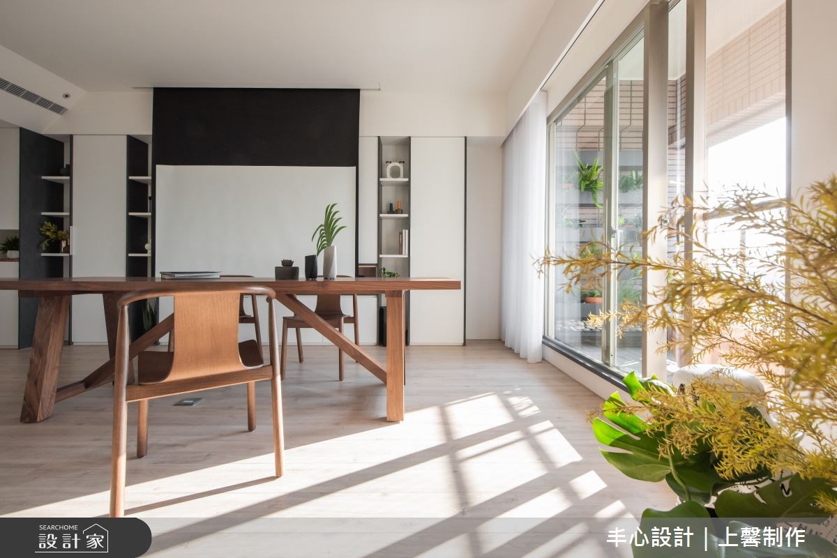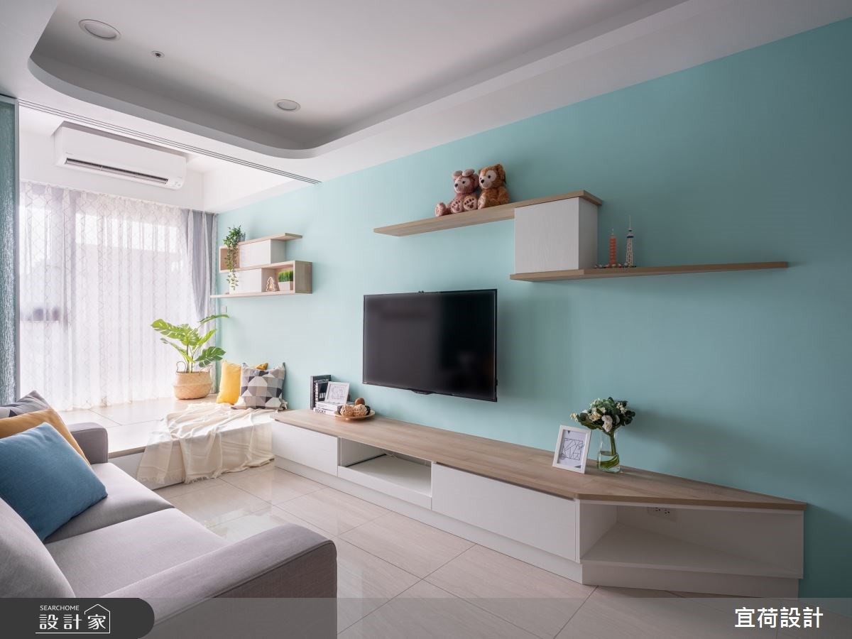 隨著時代變遷,越來越多人從有線電視的收視習慣,轉往 Netflix、YouTube 等網路平台,所以客廳也不一定要選擇傳統的電視牆,可以透過投影幕的形式,提升空間的機動性,而且投影幕後方還能夠規劃收納櫃,更有效地利用牆面。