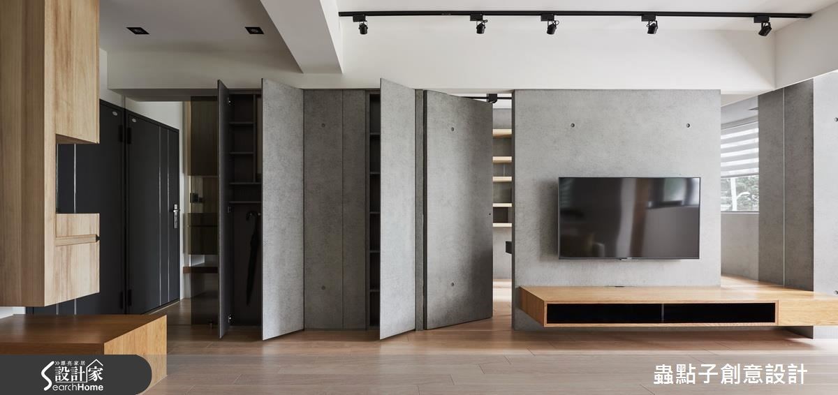 電視牆除了擺放電視、收納設備以外,還能結合隱藏門設計,將通往房間、多功能室的動線入口,俐落地隱藏於電視牆造型中,如此一來,就能拉大電視牆的視覺感受,為客廳延伸出開闊的空間感,並提高私領域的隱私性。