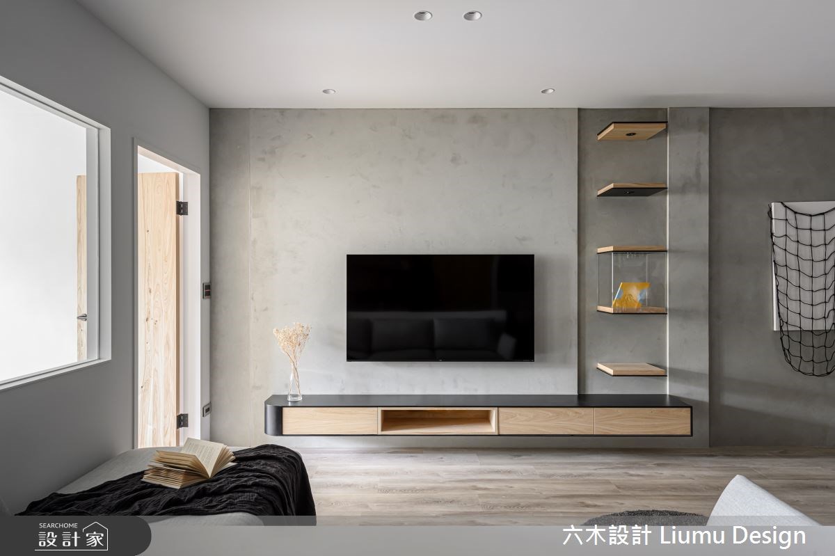 通常層板電視牆都會搭配懸浮電視櫃,一方面能夠擴充空間的收納功能,另一方面也是擺放馬克杯、公仔、相片、紀念品等收藏的展示平台,層板電視牆給予居住者相當高的使用彈性,又不會佔到過多的視覺比重,維持了電視牆的簡潔俐落。