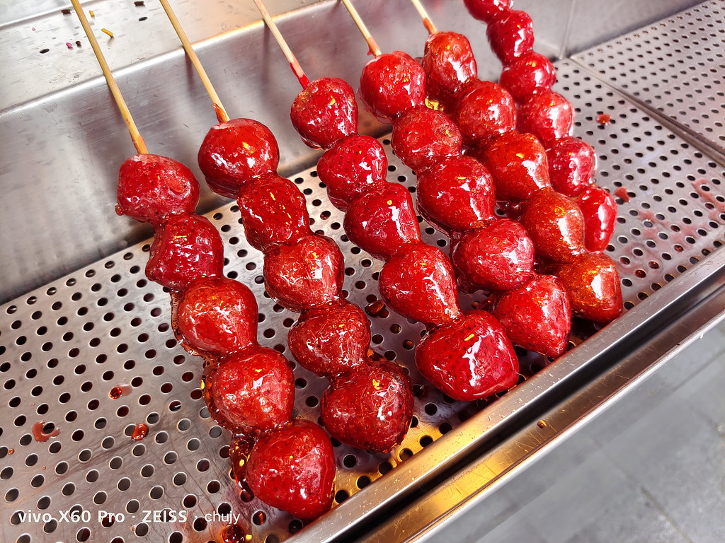 夜市的糖葫蘆,紅色光澤,鮮豔欲滴