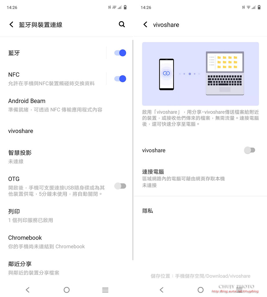 而 NFC,提供 Google pay, NFC-SIM 等功能,另外 vivoshare也能讓android 其他廠牌透過此項功能,做手機或是電腦間的連線。