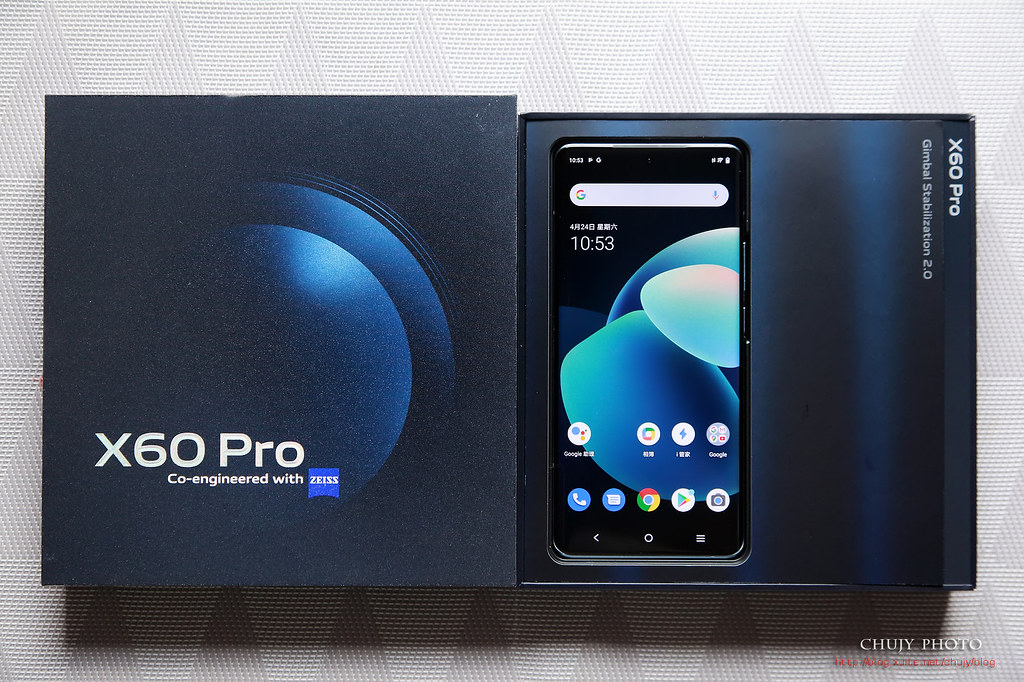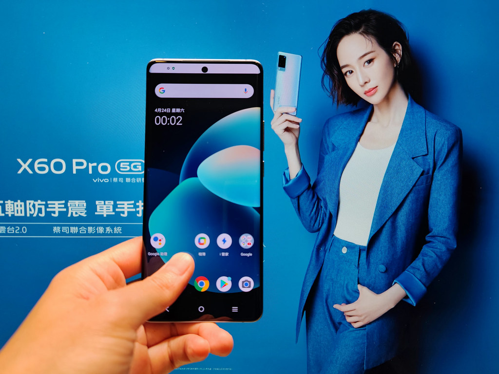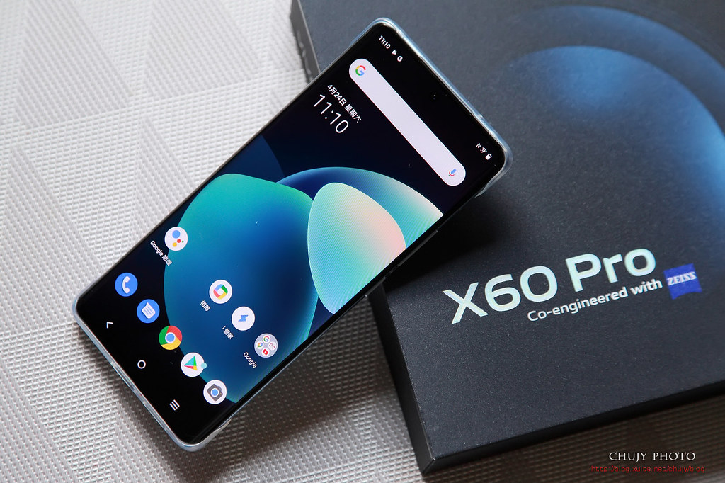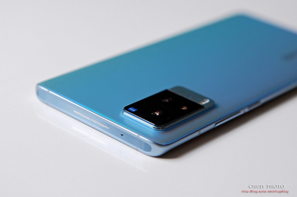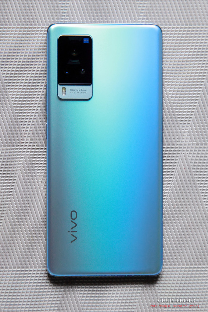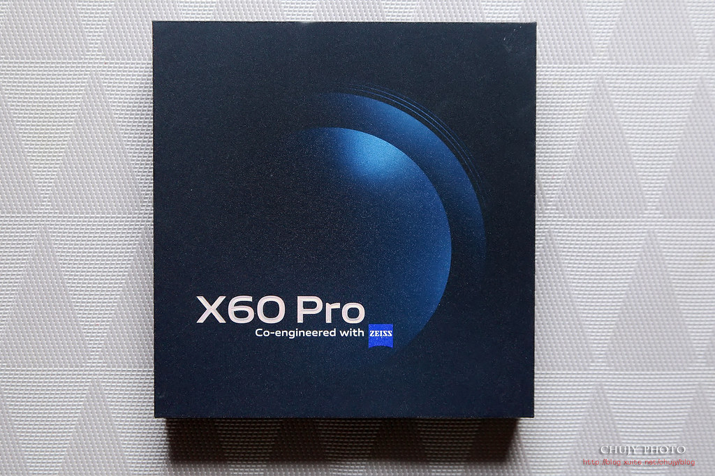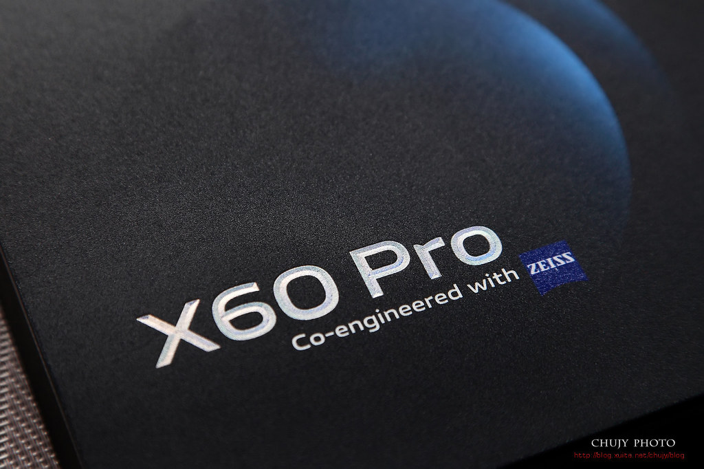 這次使用的是 vivo X60 Pro,正面看到 Co-engineered with ZEISS,藍色標。