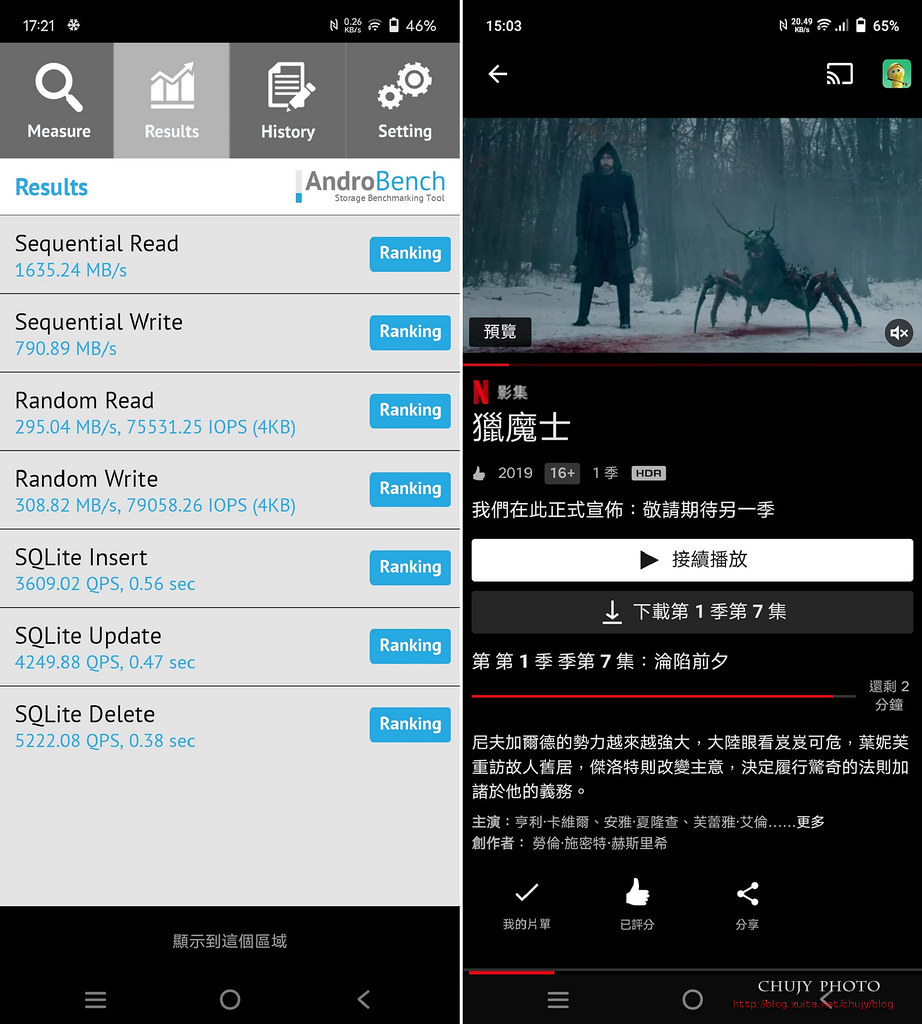 或是記憶體讀寫的測試,可觀看以下數值。以觀賞 Netflix 來說,支援 HDR+,因此在暗部上皆可清楚看到相對應的細節,不至於因為對比過大而影響觀賞感受。