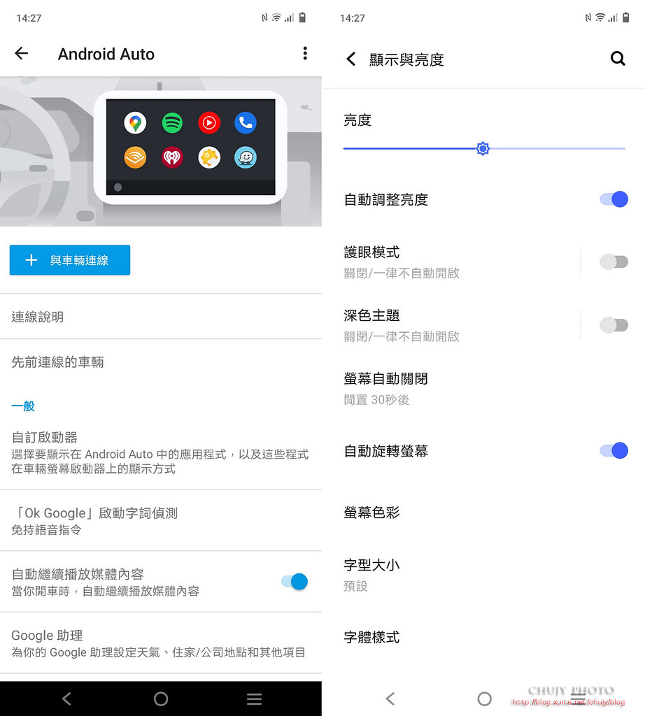 Android Auto車機使用是現在必備項目。而在螢幕方面,深色主題,護眼模式都是基本功能。