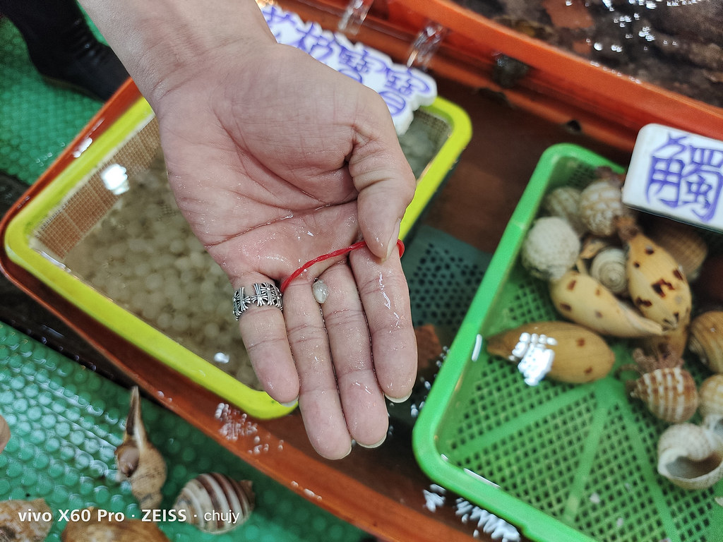 一顆顆蛋裡面都是一隻小花枝,老闆突然身出手來,馬上抓起相機拍一張,準