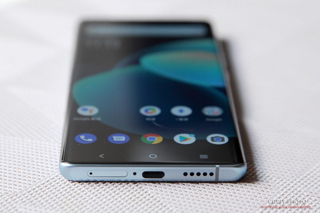 下方SIM槽則是以雙 nanoSIM 卡為設計,支援 5G + 4G 雙卡雙待,其餘則是 USB type-C插孔以及喇叭。