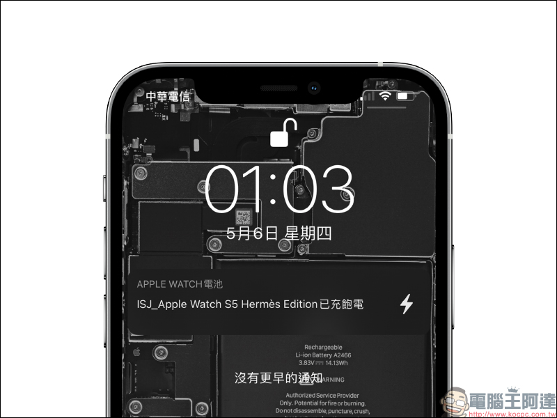 當充滿電時, iPhone 主畫面就會彈出提醒通知囉!