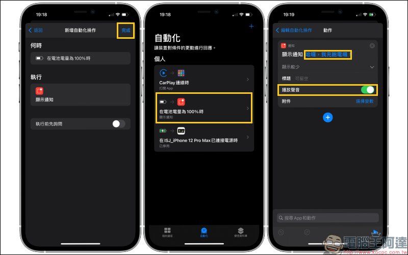 同場加映:利用自動化操作,設定 iPhone 充滿電推播通知