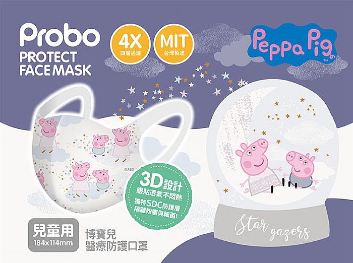 這次博寶兒推出3D立體醫用口罩其中一款就是大家最喜愛的佩佩豬,超級可愛!無厘頭的佩佩豬與又萌又調皮的弟弟喬治,化身口罩陪伴大家在防禦之路上不無聊。