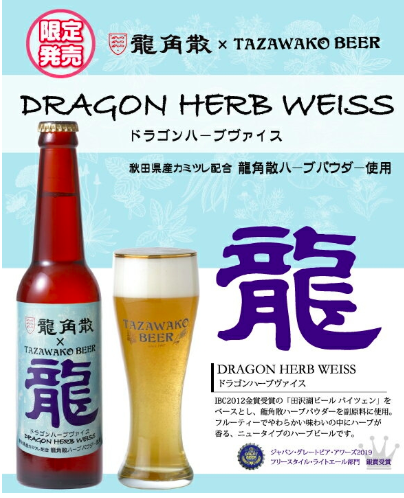 日本於2018年4月針對酒類稅法進行修訂後,可用於釀造啤酒的副原料範圍變得更擴大,許多你從沒想過的限定口味啤酒如雨後春筍一一冒出!此次「田澤湖啤酒公司」與龍角散跨界合作,以剛獲得「2019Japan Craft Beer Award」銀獎的小麥啤酒為基底,在製作時加入漢方藥草,釀造出帶有淡淡果香的龍角散風味啤酒,由 4/18 起限量販售。