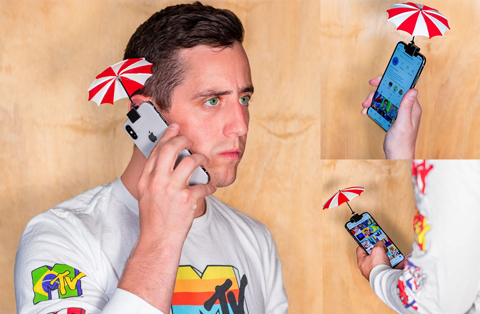 在這個3C猖狂的時代,哪個人沒曾被手機俘虜呢?不過一遇上大雨手機一淋濕還真的心疼不已~現在即使再大的雨也不怕!專為手機設計的迷你雨傘,只要夾在手機上,通話、滑手機也不怕雨水順著孔洞滲進手機裡,不過儂編心想,若大雨真的來,還沒開啟手機雨傘自己就先濕一半了吧~(笑)