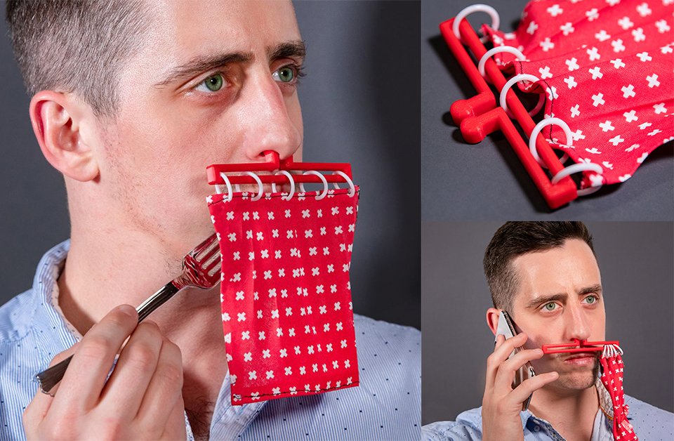 人人都說吃飯摀嘴是優雅的禮儀,甚至對於吃相豪邁的人來說更是加分關鍵!倘若與第一次約會的對象用餐,害怕難看的吃相嚇著對方,不如拉上布簾給嘴巴一個私人空間吧~紅白相間的布簾固定在鼻孔間,豪邁的設計讓你還能隨意開合,雖然不能為吃相大加分,但這復古的款型真的很適合上日本經典綜藝節目《超級變變變》來場魔術表演是吧?