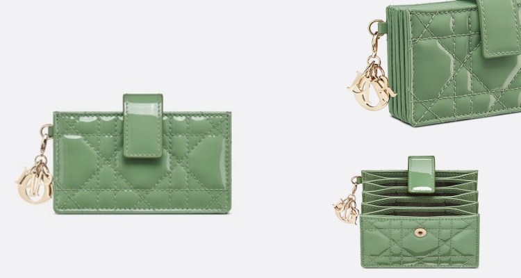 秀智選用的酪梨綠卡夾,在外觀設計上取用了「Lady Dior」的設計元素,精緻的藤格紋衍縫及Logo吊飾,皆已經精巧的方式呈現,讓妳用一只好入手的卡夾,也能感受到 Dior 卓越的工藝技法。(商品售價:NTD12,500)