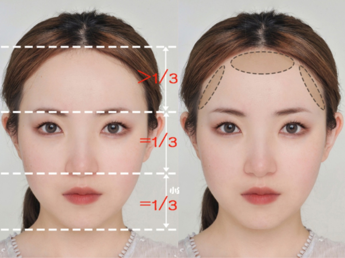 長型額頭也就是我們常說的高額頭啦!一般來說,我們的上庭、中庭、下庭等長時,是最理想的臉型完美比例。高額頭也就是上庭大於全臉長度1/3,經常伴隨的問題是偽禿感。