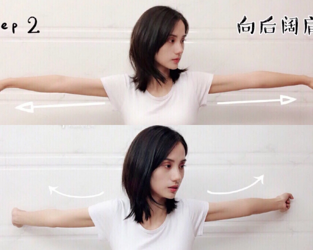 第一步先將雙臂向兩側展開,雙手緊握拳頭,迅速向前繞圈20次,接著向後繞圈20次。做動作時,手臂注意保持直線不彎曲,繞圈的動作也幅度不要太大~這一步可以幫助運動到手臂整體大臂,減少蝴蝶袖,訓練二頭肌!
