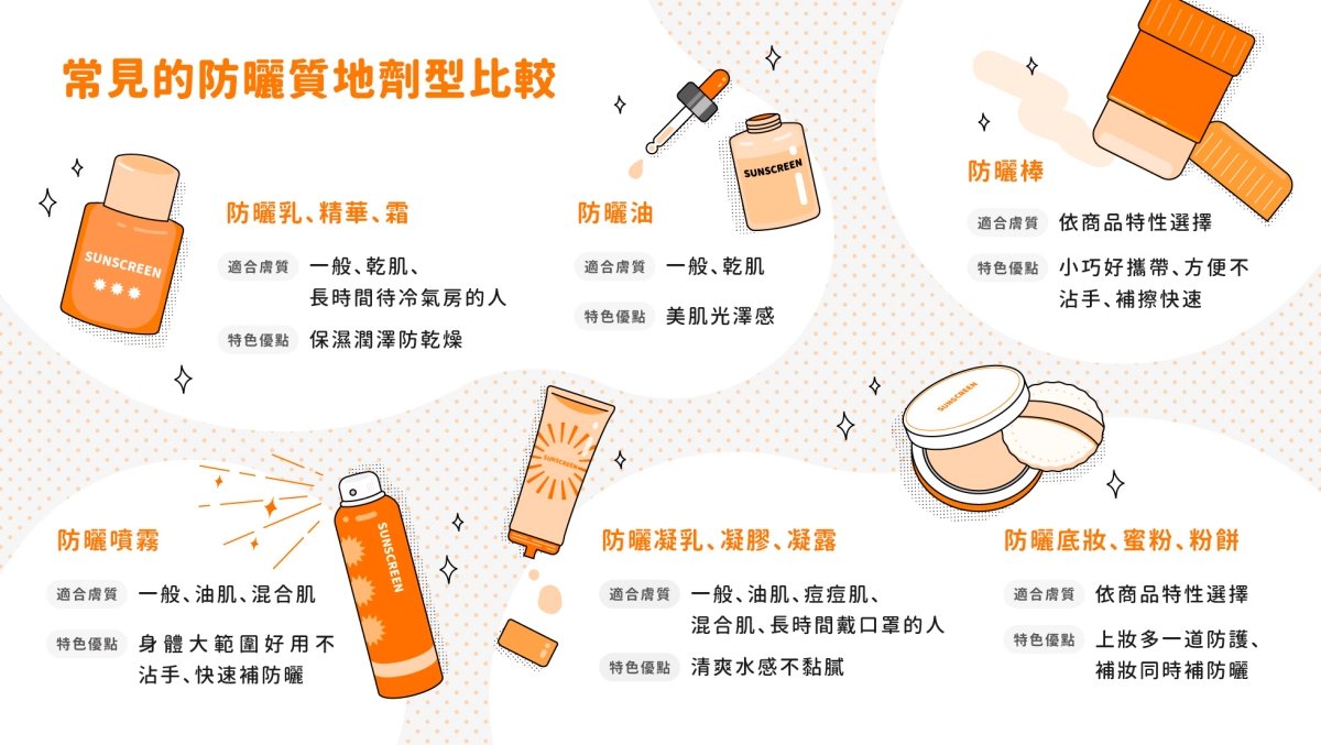*市售防曬大多屬於物理+化學配方的「混合型防曬」,結合兩者優點達到高效防曬力與最佳使用膚觸。但若是極敏感肌、醫美術後、嬰幼兒肌膚仍較建議使用純物理性防曬。