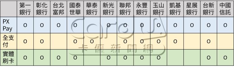 支援PX Pay、全支付或在全聯門市刷卡的銀行