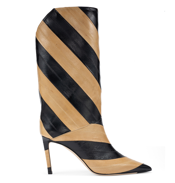撞色斜紋皮革高跟靴,價格店洽。
