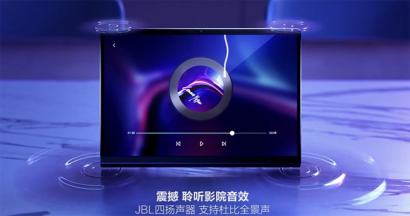 然而聯想 Yoga Pad Pro 最殺手級的特色,是在於它的 13 吋 2K 16:10 杜比視界 / HDR 10 / 100% sRGB 色域螢幕與總輸出功率達 9W 支援 Dolby Atoms 的 4 顆 JBL 揚聲器,不僅能為平板電腦本身提供優異的影音效果,更能透過轉軸旁的 micro HDMI 埠輸入外接訊號來顯示。