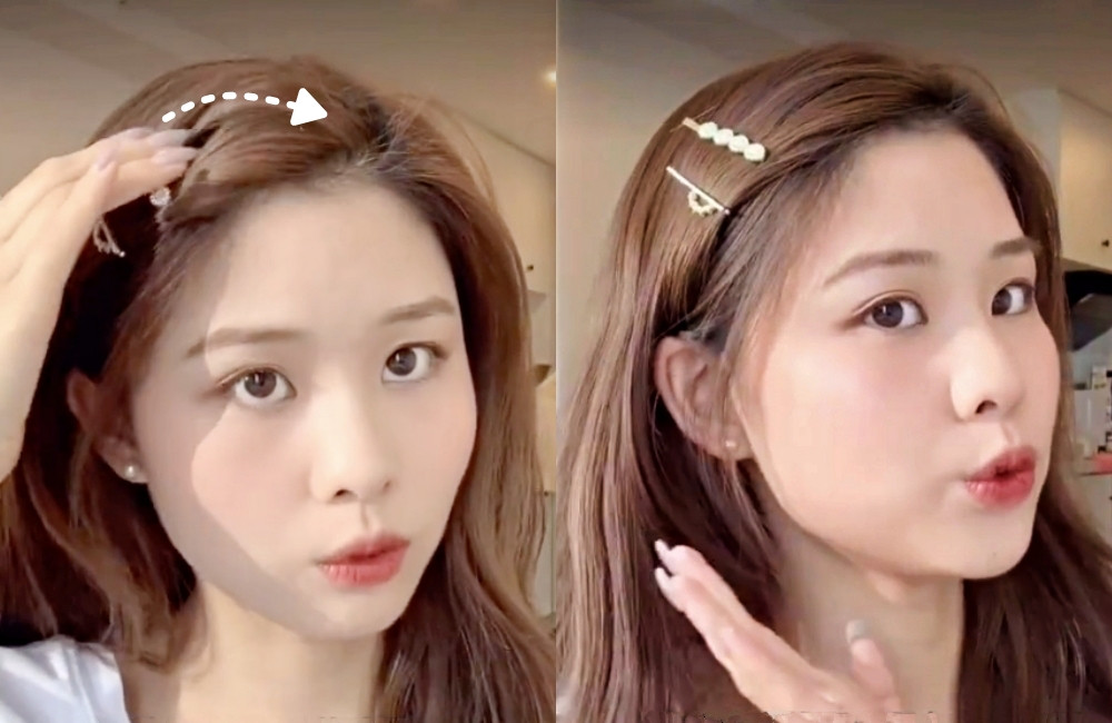 像是韓國之前流行會一次戴2、3個夾子也可以,在夾完後可以再用手將瀏海往反方向推一推、讓瀏海跟不更加蓬鬆,不僅可以增加顱頂高度、讓臉看起來更加顯瘦。