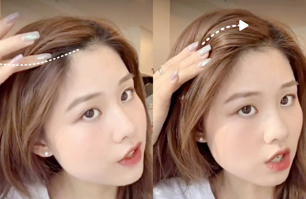 正確戴法可以先從瀏海撥出一條髮線,接著稍微往反方向推、讓瀏海更加蓬鬆。