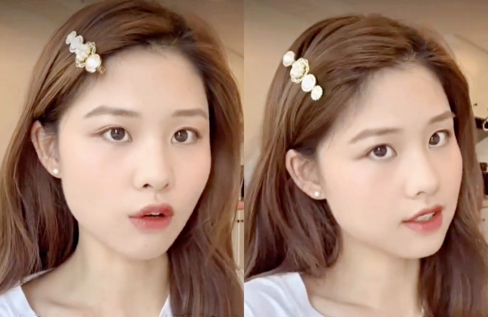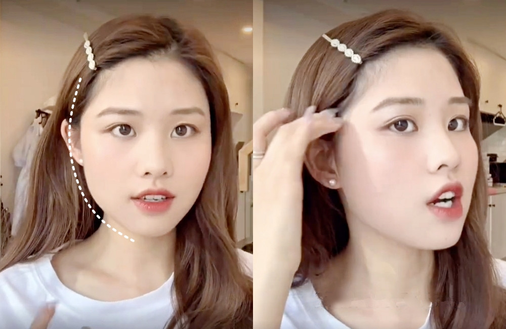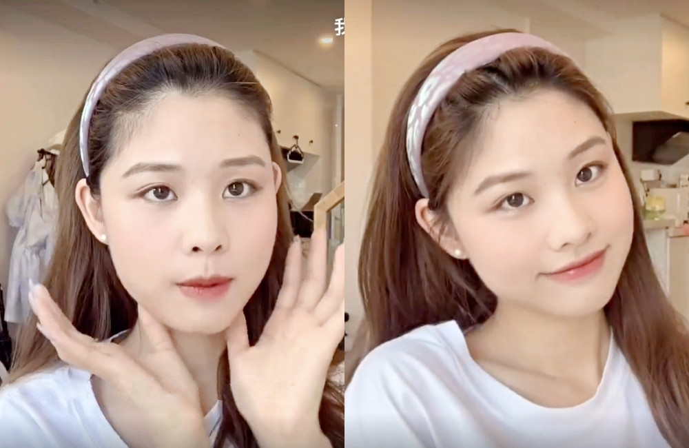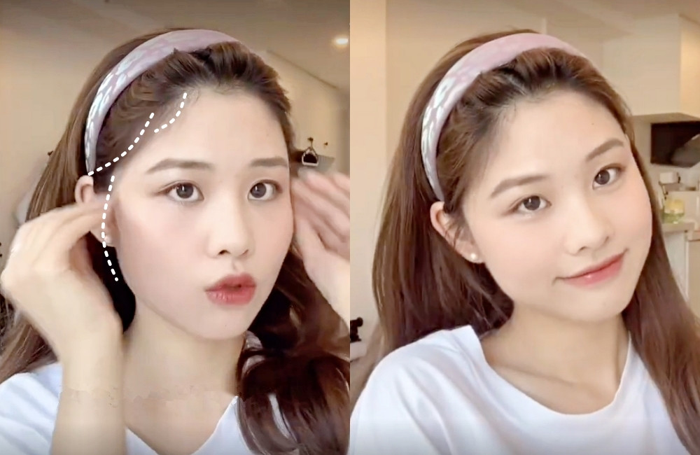 對比一下,一樣是戴髮箍,但是只要注意高顱頂及髮際線碎髮的細節,就可以有更加修飾臉型的效果。
