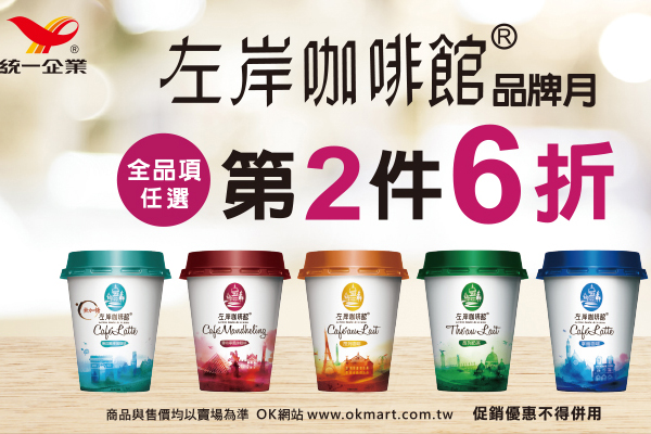 活動期間內,於OK便利商店購買左岸咖啡館,全品項任選第2件6折。 ※所有商品皆以賣場實際售出為準 原文出處OK超商X左岸咖啡 任選第2件6折 相關文章卡迪那洋芋片x松包子 萊爾富推獨家聯名新品7-ELEVEN攜手雙品牌 打造O2O外送服務平台萊爾富集點換療癒小物 「小玩笑小水獺」第二彈7-ELEVEN把愛找回來!購買「永續商品」做愛心