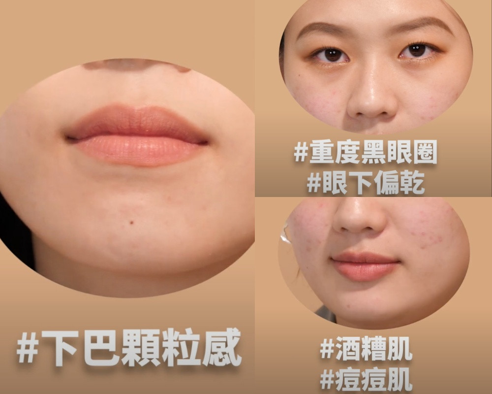 (左)A編:無瑕中性膚質,下巴顆粒感嚴重