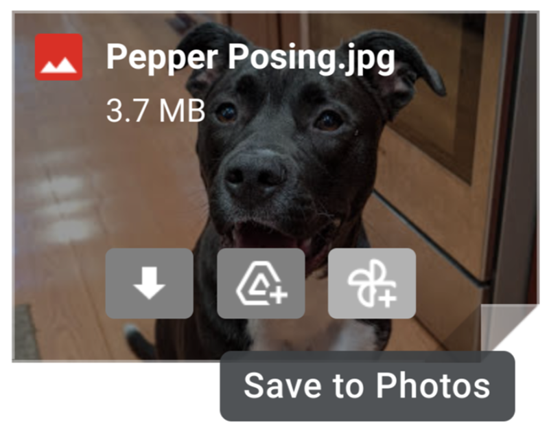 先前 Gmail 的圖片附檔快捷功能,基本上只有直接下載或者是轉存到 Google 雲端硬碟的選項。然而也許是因為 Google 相簿的無限上傳功能即將淡出,而將回歸正常計算使用者雲端空間容量關係。Google 感覺也更願意引導使用者將圖片匯入使用 - 而且還是在郵件底部的副檔預覽縮圖以及點開圖片的單獨檢視介面,都看得到有著小風車形狀的按鈕選項。